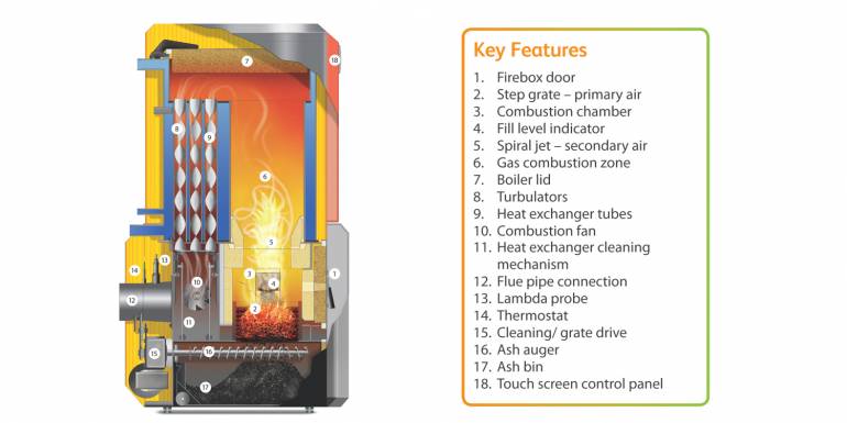 These boilers are designed to achieve a quick and easy start with automatic hot air ignition and a lambda probe to add just the right amount of oxygen. The result is optimum combustion and optimum efficiency.